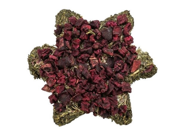 Zdravý a chutný pamlsek ve tvaru hvězdy z petržele a červené řepy, vhodný pro všechny druhy hlodavců i králíky, poskytuje hlodavcům zábavu při okusování a podporuje jejich přirozené chování, bez obilovin, bez přidaného cukru