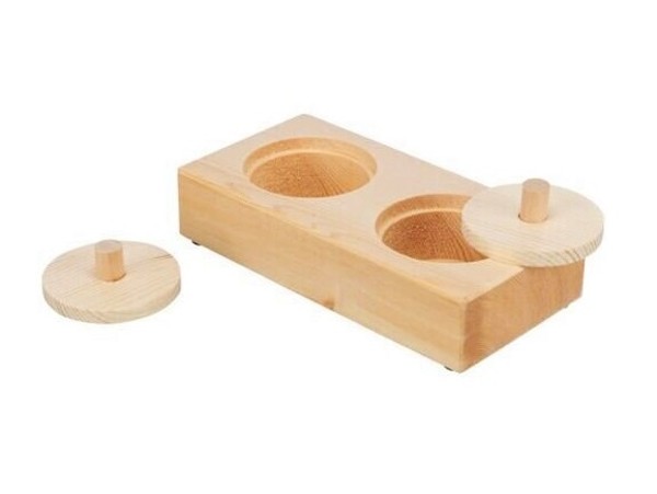 Interaktivní hra z neošetřeného přírodního dřeva pro větší hlodavce a králíky, zvednutím víčka se zvíře dostane k odměně, poskytuje zábavu, podporuje přirozené chování a zvídavost, pomáhá při obrušování hlodáků